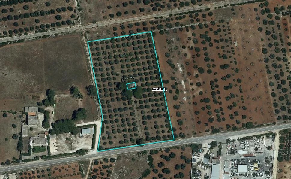 Veduta aerea dei dintorni con il lotto evidenziato.