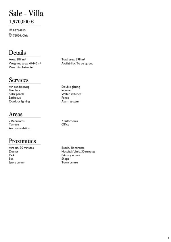 Parking area according to Legge Tognoli: approx. 40 m² (required for residential use)
